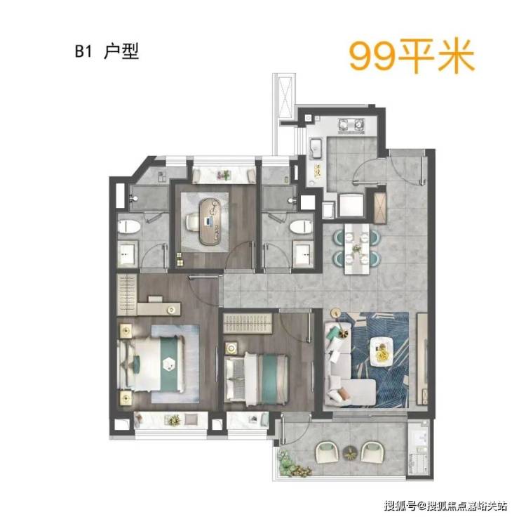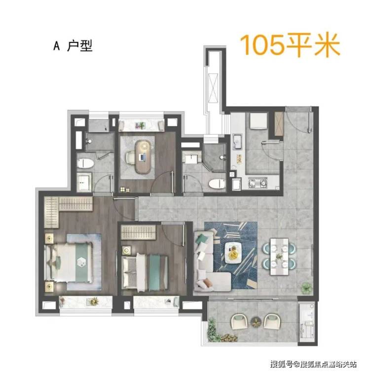 关键417万既可以买到精装3房,且户型亮点多多👇