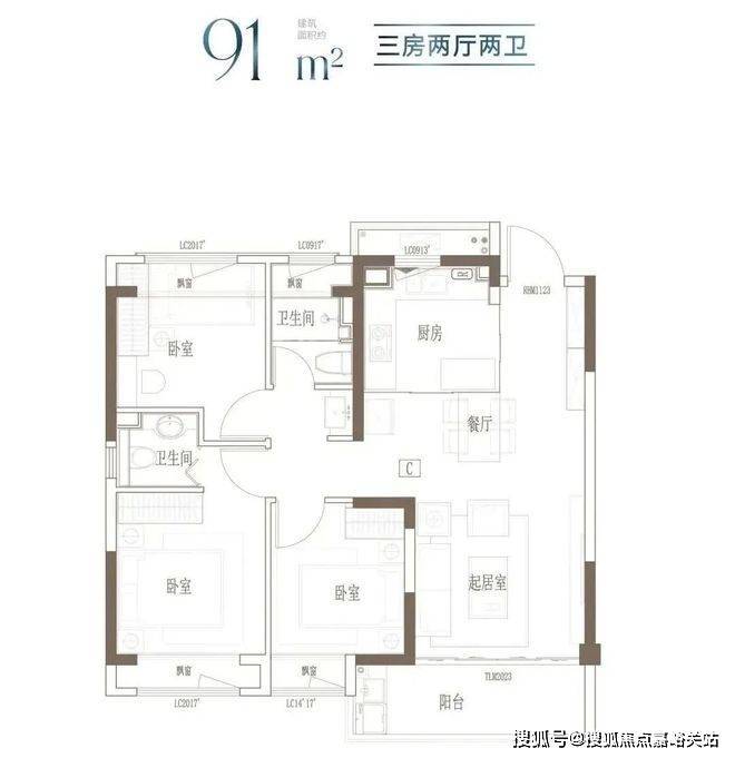 建面约81㎡ 2房2厅1卫▼中国铁建熙语售楼处电话4008569058☑️☑️