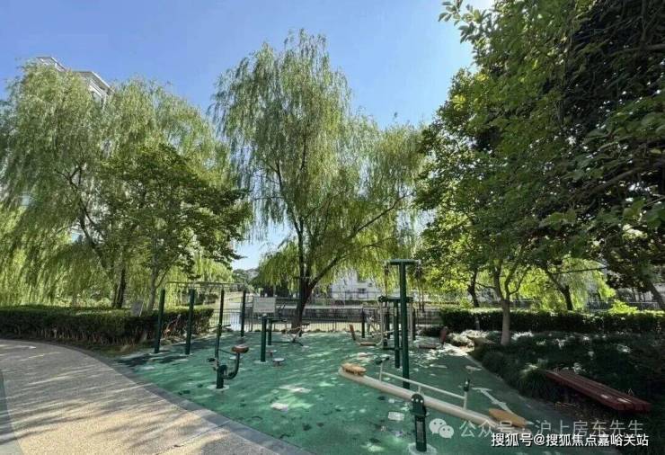 因为小区临河而建,西南侧的楼盘全都是水景房,小区内也配置了沿河步道,活动区就在步道旁,边欣赏河景边健身,确实惬意。