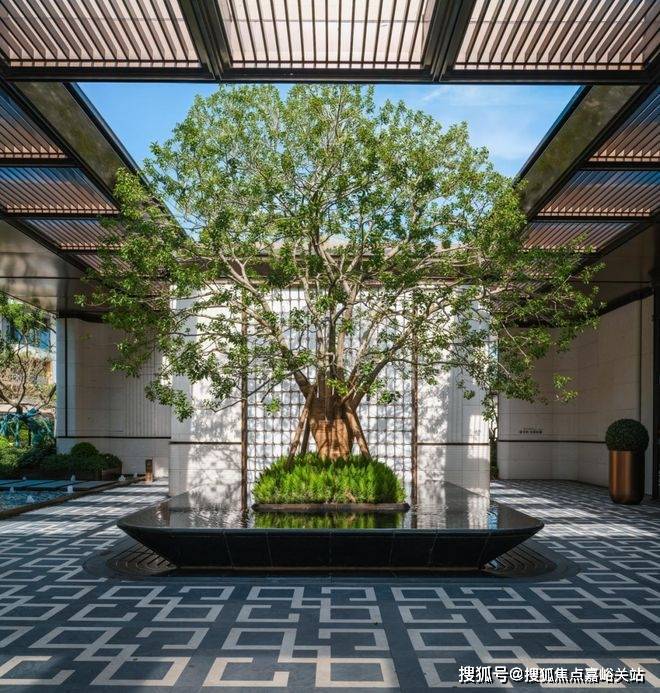 社区入口,百米酒店式落客门庭、超60年树龄铁冬青打造的 “大树聚场”、潘多拉发光奢石拼花的 “躺平水院”,是家人休憩、邻里小聚的好去处;