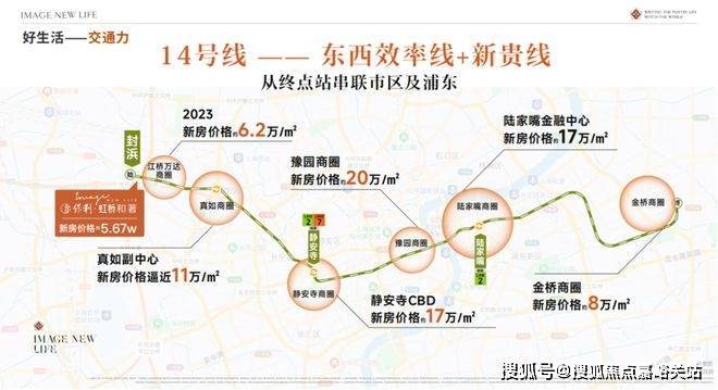 14号线和嘉闵线(在建中)双轨交汇,3站虹桥枢纽,5站普陀,一脉静安。距14号线地铁口仅约200米,步行2分钟即达。作为始发站,通勤有位,30分钟直达静安寺,45分钟抵达陆家嘴。同时相较沿线动辄10万+的房价,本项目“5”字头单价,堪称“外环外的预算,中环级的享受”。