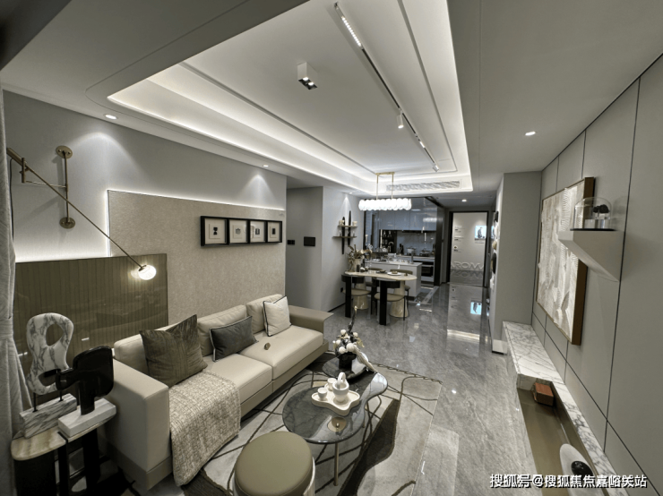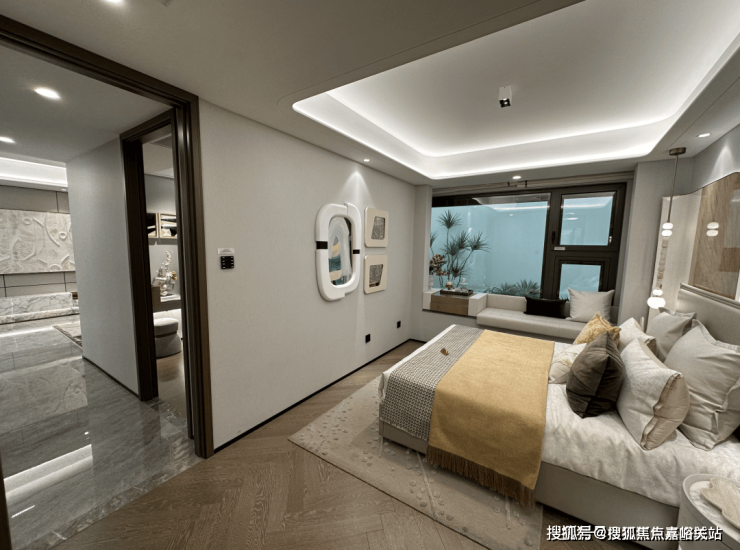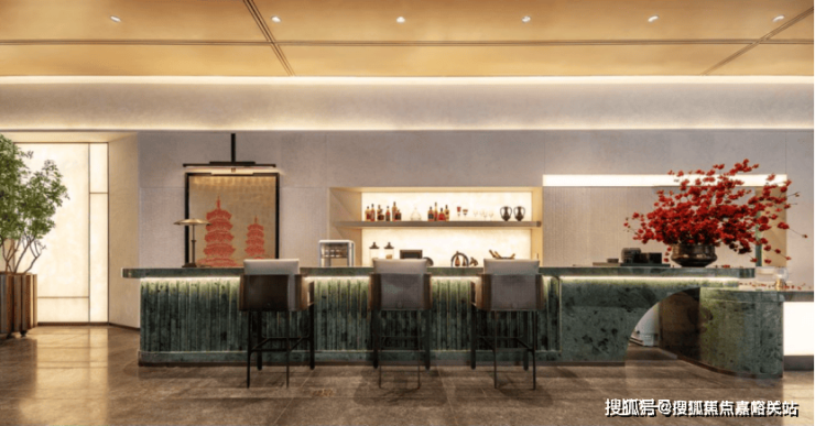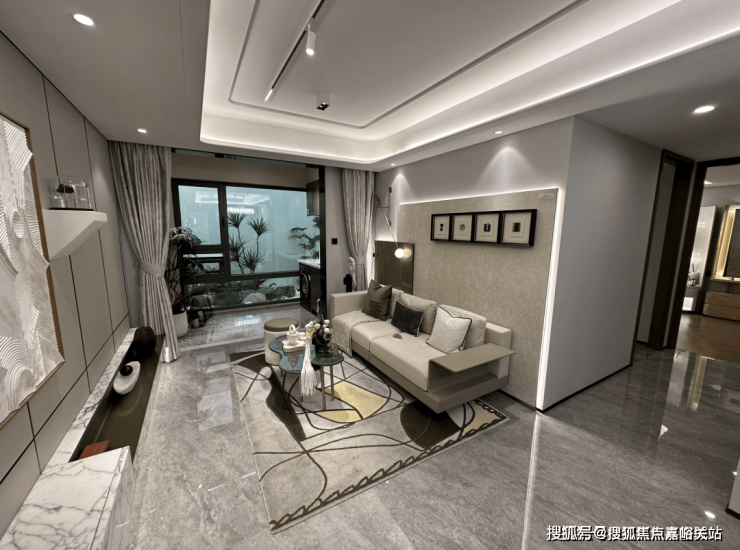• 建筑立面:项目采用现代简约风格的立面设计,使用石材、铝板和玻璃幕墙等材质,打造出具有高辨识度和现代感的建筑外观。这种设计不仅提升了项目的审美价值,也反映了绿城对建筑质量的高标准要求。