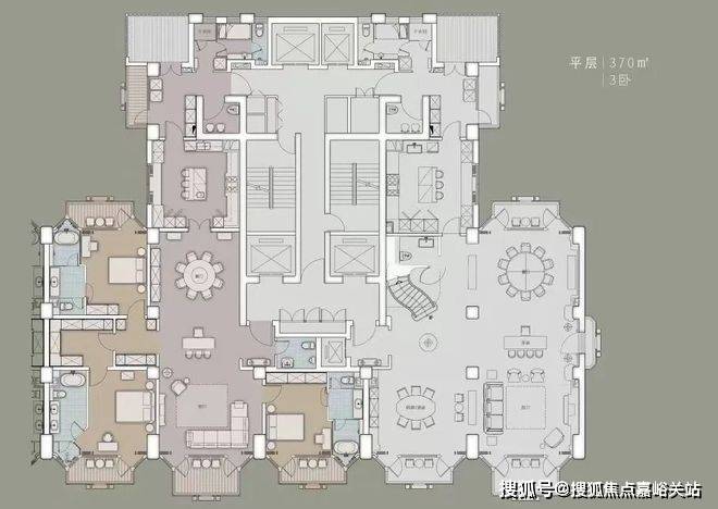 370㎡经典大平层:四房三厅四卫设计,全明通透,南向超大面宽客厅连接观景阳台,主卧套房带独立衣帽间、卫浴,私密尊贵。