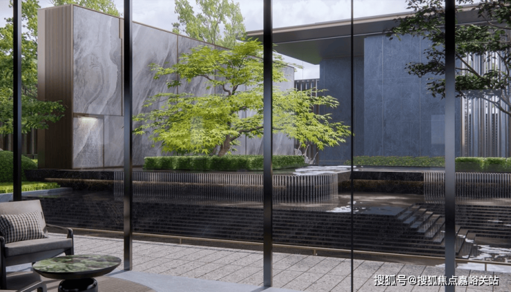 第五重: 下沉庭院打造一体式景观,墙面流水至地面,结合水中花池营造出纯粹的自然之境。