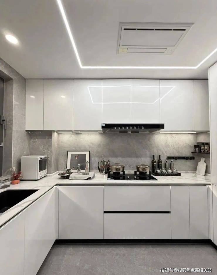 厨房空间,甄选西门子新款的抽油烟机、灶具、洗碗机等,甚至连大部分项目不配备的冰箱也是交付标准;还特别配置了轨道插座、前端净水器和凉霸;吊轨金属玻璃移门,既美观又方便清理。