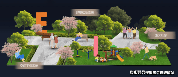 联发·时光新澍以“全场景松弛系统”为核心,将景观划分为静音治愈、亲宠陪伴、自在休憩、街角松弛等四大功能场域