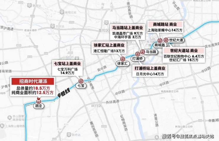 第二,从招商时代潮派出发: 3站七宝、6站漕河泾、9站徐家汇 ,之后还有打浦桥、马当路、小南门、世纪大道、金桥等一系列大产业区和商业中心,这条轨交的能级在上海数一数二。