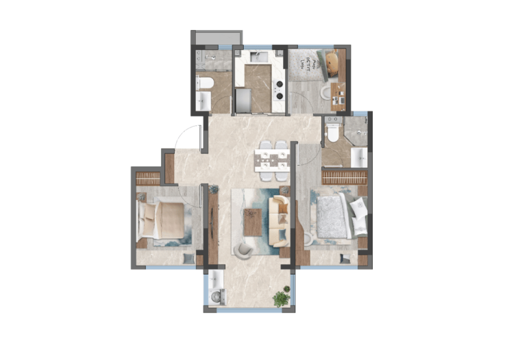 所以,这个户型从面积段上来看是建面约95㎡的紧凑型3房,但整体室内的各个空间都并不拥挤。