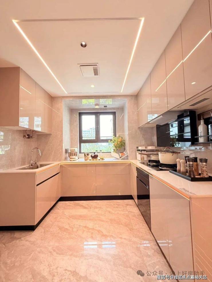 厨房整体橱柜、吸油烟机、灶具、洗碗机、多功能集成一体水槽、凉霸等都是交付标准。