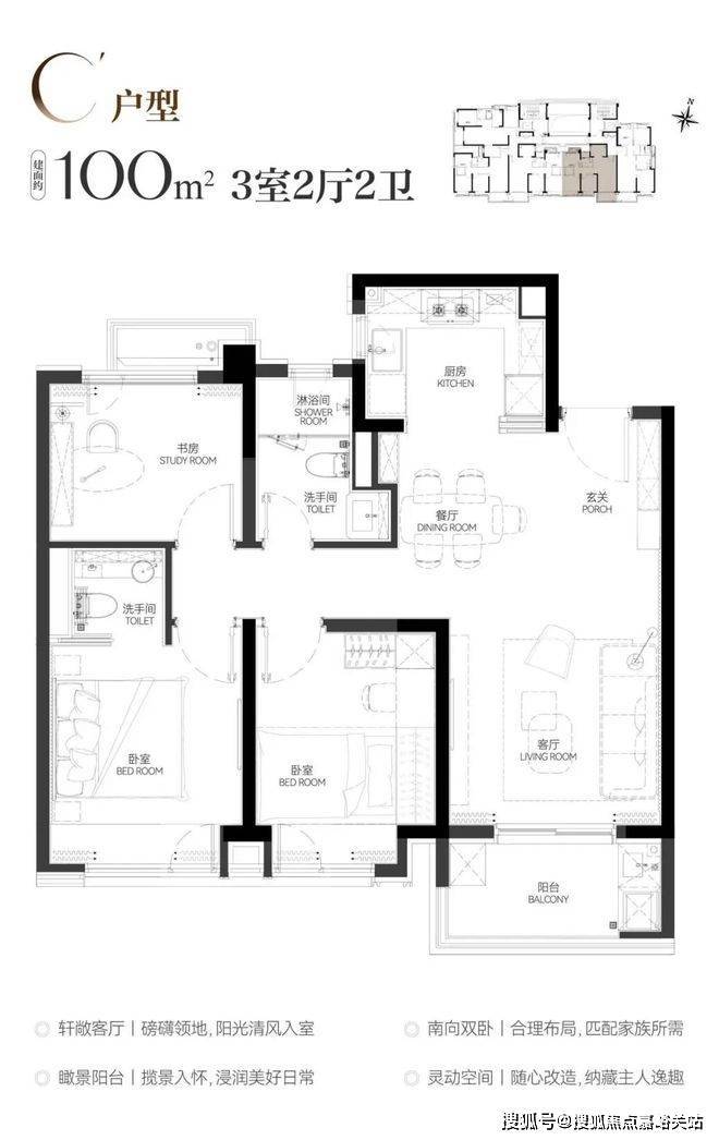 在产品打造上,项目外立面采用大面积玻璃与金属材质组合,现代感十足;社区内规划精致庭园、全龄段运动休闲场地,配备星级车库、地上地下双大堂及智慧门禁系统,归家仪式感拉满。户型设计更是兼顾实用性与舒适度:88㎡两房适配单身或两人世界的精致生活需求,100㎡三房则实现三开间朝南、动静分离、主卧套房等优质配置,部分户型更有三飘窗 + 南向大阳台的观景空间,通风与采光俱佳。