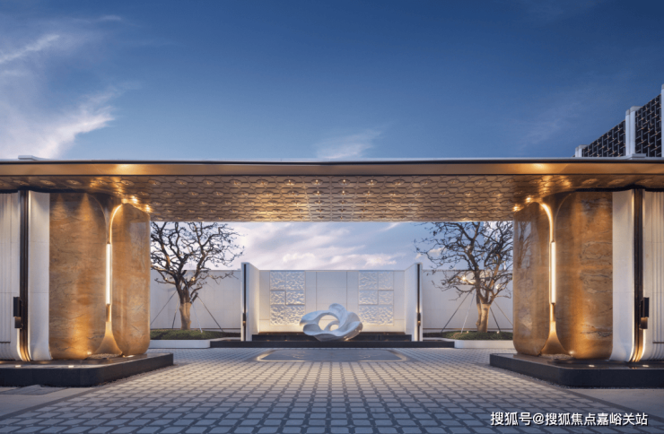 闵行第一个约4米高墙、约350米城市华墙勾勒社区恢弘界面,约70米星级大门以贝金米黄石材、玉兰花雕塑点睛,透光云石悬于门厅,勾勒出媲美半岛酒店的归家门面。