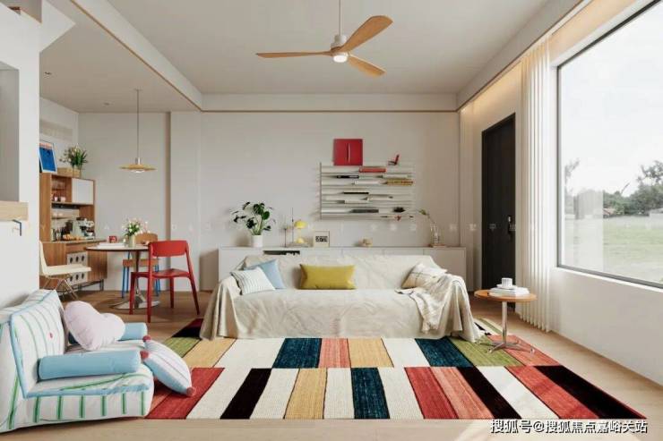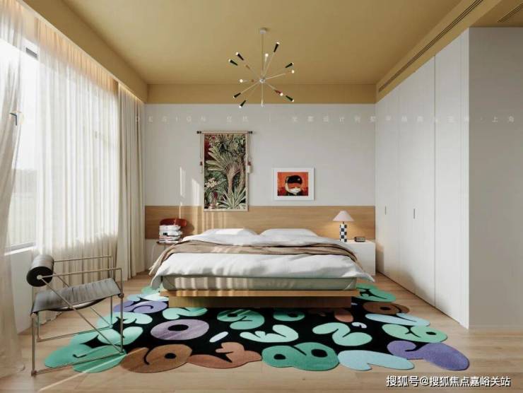 墙面以留白为纸,地毯色彩的的选择,斑斓且克制,在矛盾中,增强空间的层次感。