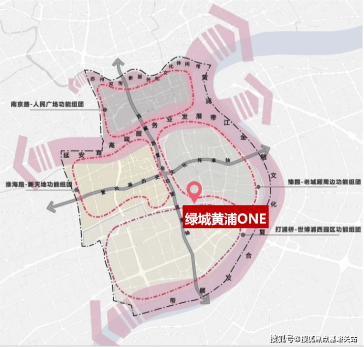 这一规划不仅物理上扩大了新天地的面积,更是重构了城市肌理,让几个片区左右相连,当中不再有断裂,联合构成一个强劲的黄浦中部板块。同时,也让 绿城黄浦ONE成为了大新天地板块的新核心!