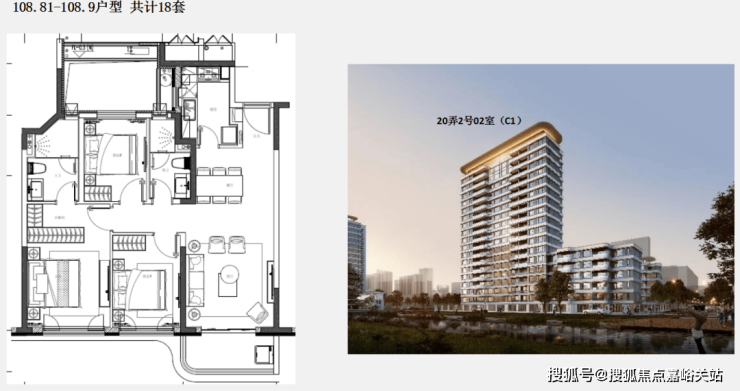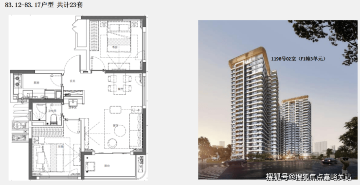 该项目一期于2023年7月取证,均价约9.96万/㎡,推出建面约83-198㎡的2-4房房源。主力户型为108㎡的三房两厅两卫,得房率约80%。