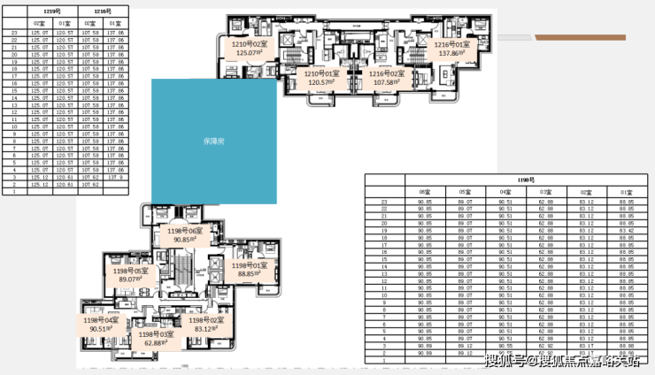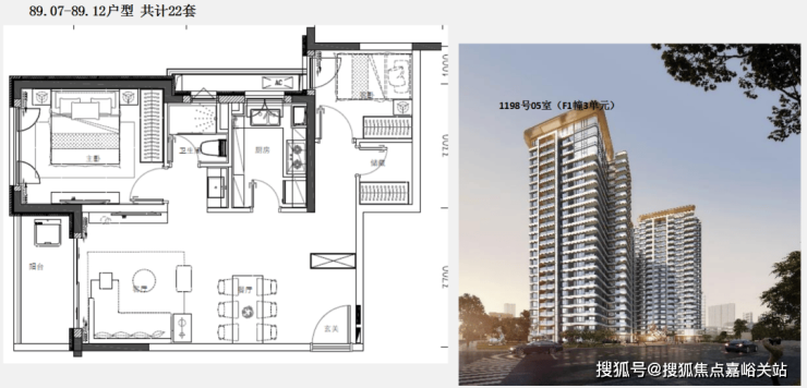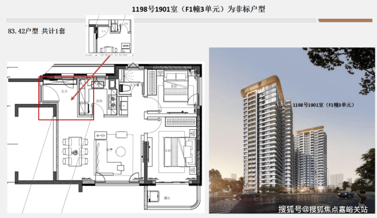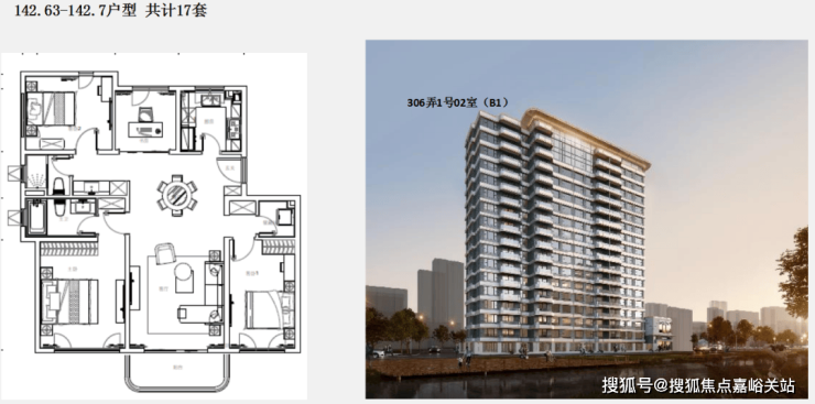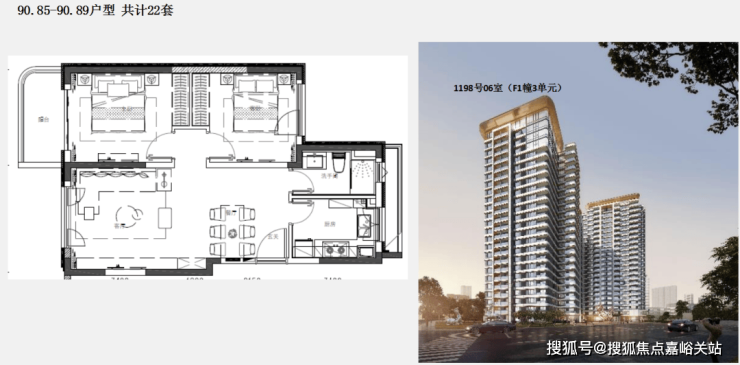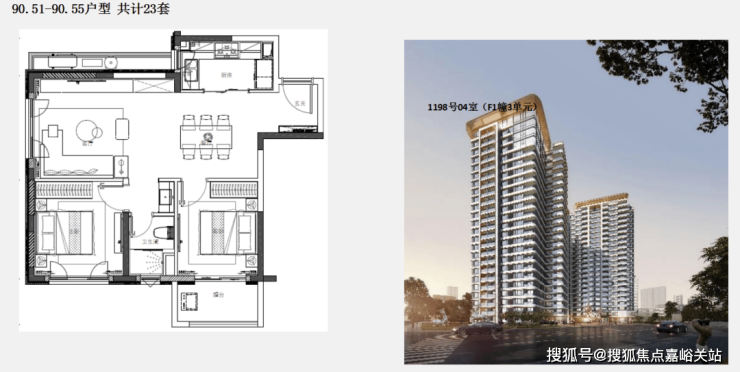 项目一期于2023年7月取证,均价约9.96万/㎡,推出建面约83-198㎡的2-4房房源。截至目前,仍有部分房源在售,主力户型为108㎡的三房两厅两卫,得房率约80%。