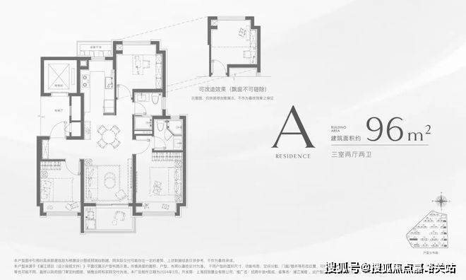 这个96㎡的户型,不仅实现了3房功能性一步到位,还有2卫配置!降低当下置业成本的同时,未来在二手市场也能抢占先机!
