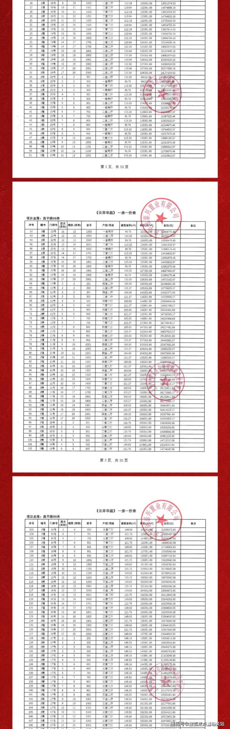 项目一房一价表▼