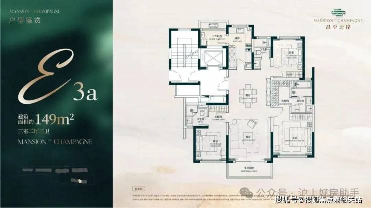 此户型最靠近苏州河,特地设计了 270度转角阳台 直面苏河一线景观!4个套房设计,尊崇感十足!此户型仅有6套,珍藏属性拉满!