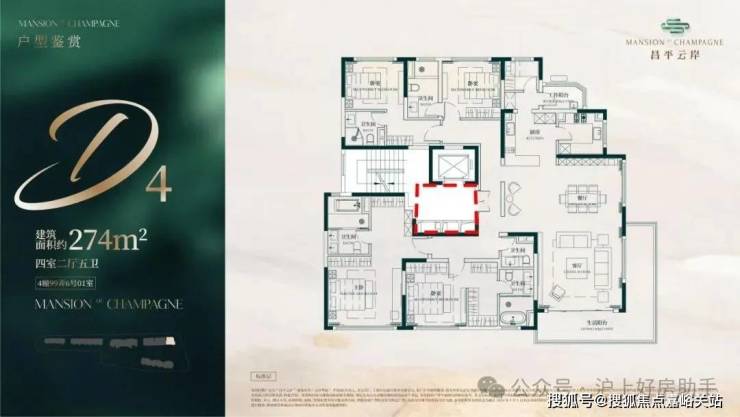 建面约274㎡4房2厅5卫户型▼