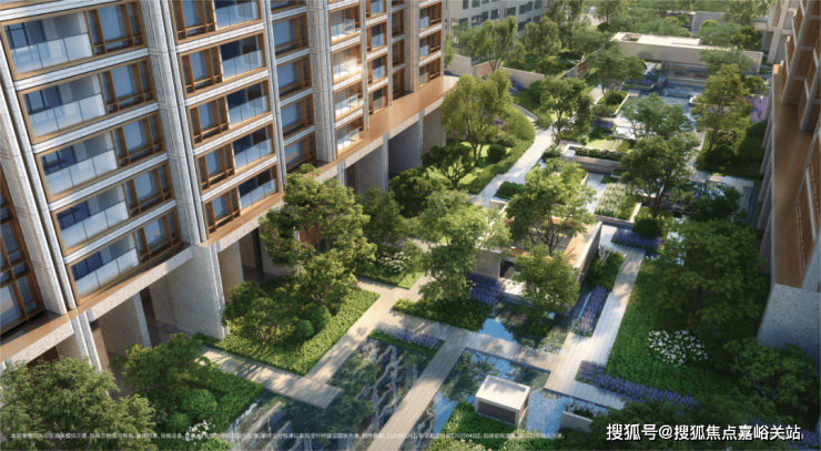 通过景观设计,将小区景打造成了立体台地花园,设置缓坡、下沉式花园、台阶等,让整体景观表现出立体层次感,错落有致。