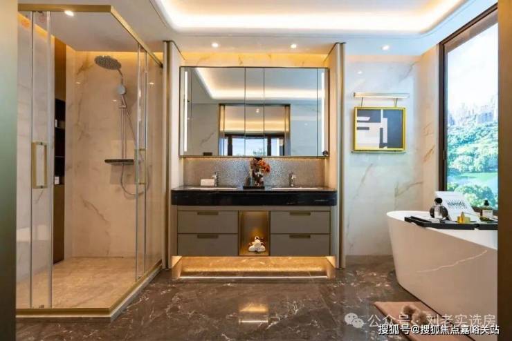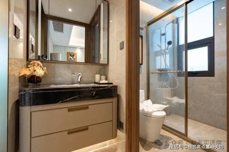 卫生间甄选唯宝的台下盆、汉斯格雅的龙头+恒温花酒,玫瑰岛的淋浴房,科勒的智能一体马桶+浴缸+浴缸龙头等 , 生活质感肉眼可见。