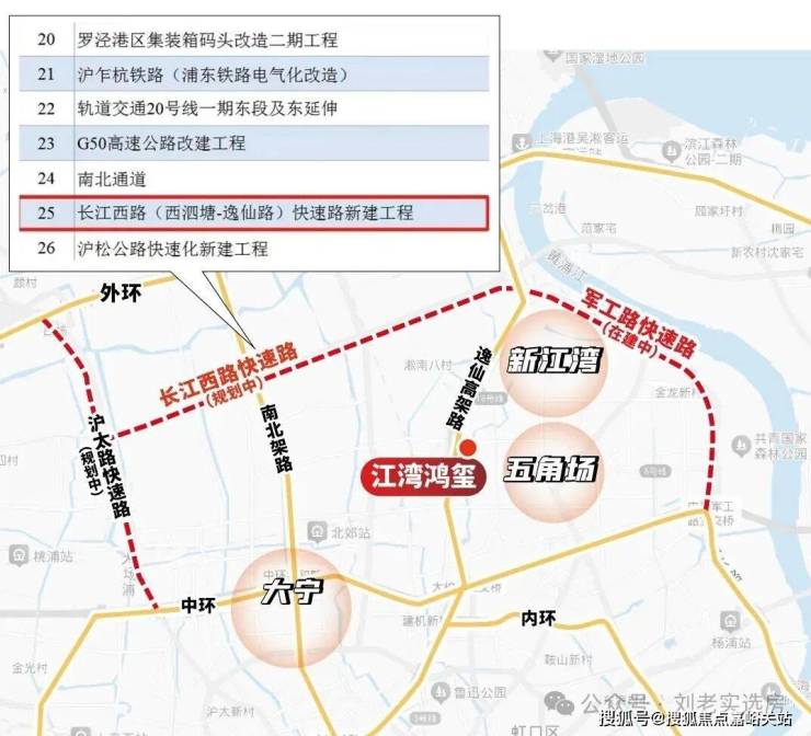 军工路快速路新建工程预计今年年内完工,意味中环北抬今年将迈出重要一步, 而长江西路快速路已被列入2025年上海市重大工程清单,预计即将开工。