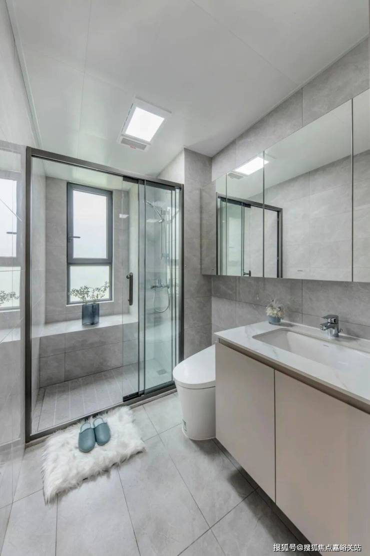 通常,主卫和次卫能拥有窗户达到全明采光已经称得上优秀了,而这套户型的两个卫生间均都有飘窗,丰富收纳可能性。
