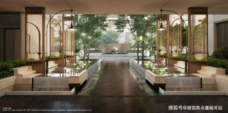 项目以艺术为核心,集合连廊、水景、奢石等布景, 打造六大定制级剧场花园,让居者时刻与自然相拥。