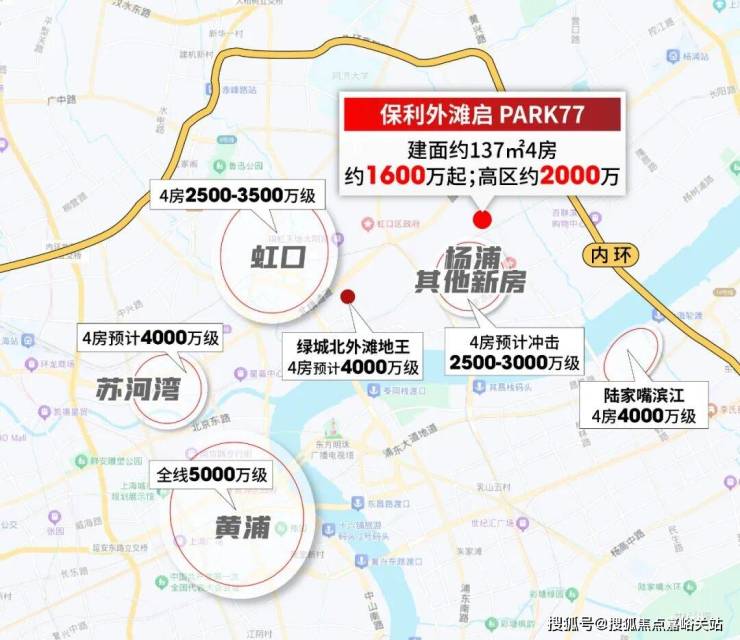 北外滩地王4房预计售价 4000万级;虹口其他新房4房价格普遍在 2500-3500万;静安苏河湾4房预计 4000万级;陆家嘴滨江4房同样 4000万级。如此对比之下, 保利外滩启PARK77高区2000万级4房的价值,可谓市中心“独一份”