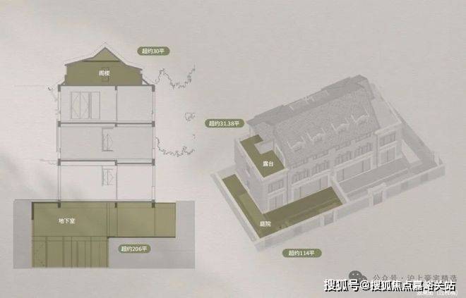 约3.6m首层层高,阔尺采光面。
