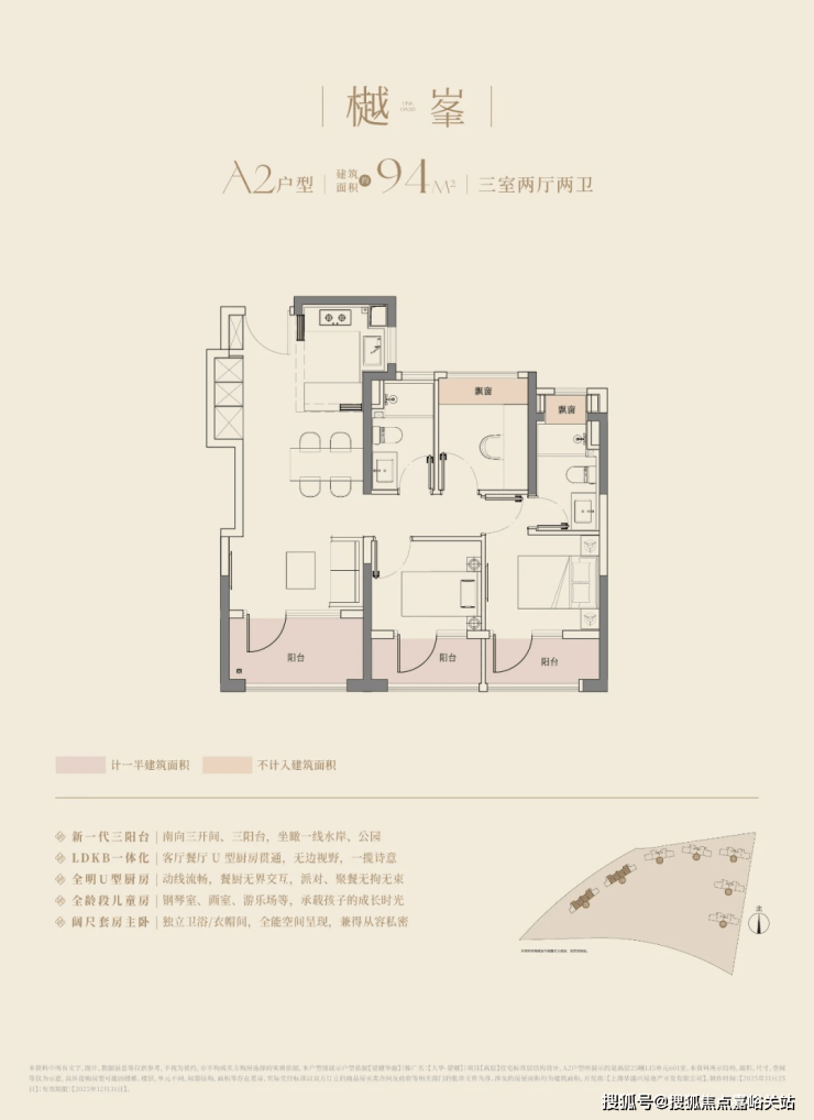 在这里,高层建面约94㎡户型做到了惊人的 三阳台, 对比同板块内以前的标杆小区,同面积段户型只做了1个阳台。不仅数量发生质的变化, 实得面积 也大大增加。