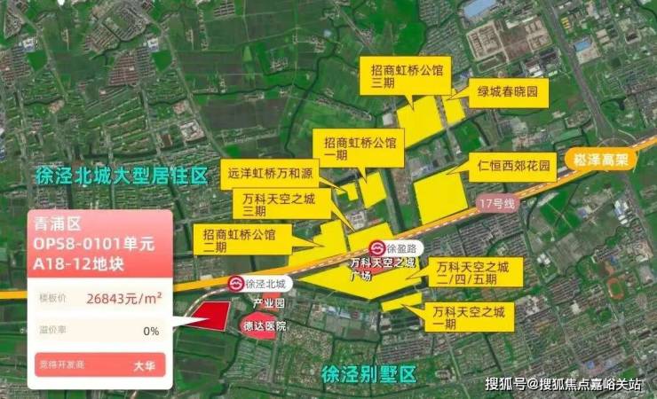 项目周边配套也是令人惊喜。交通上,项目北侧紧邻17号线徐泾北城站(需绕行河道),1站可达徐盈路天空万科广场,2站至蟠龙古镇商业区,3站直达国家会展中心,4站即达虹桥枢纽。