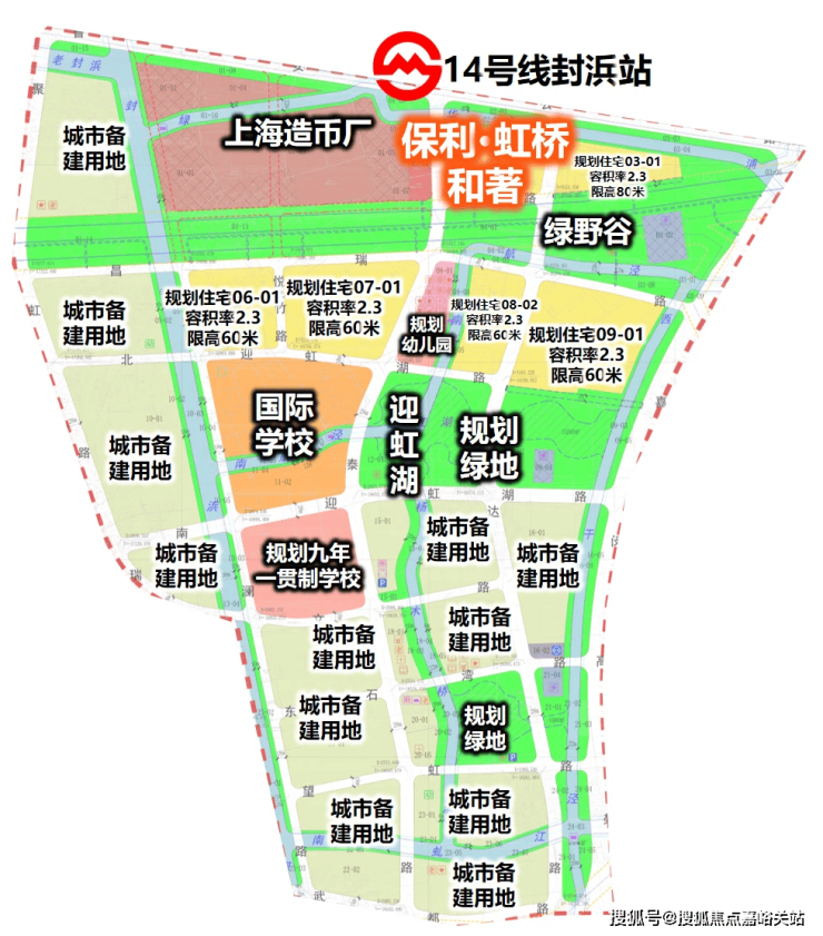 轨交:地块与地铁14号线终点站封浜站的直线距离不到500米,坐一站到乐秀路,未来可以换乘嘉闵线(在建),连接大虹桥、七宝、春申等板块。