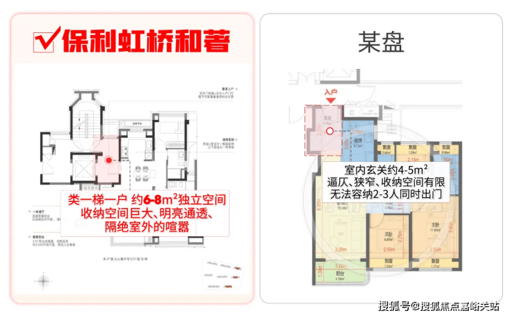 相比其他百平米3房玄关的逼仄、收纳空间少的问题,保利虹桥和著本次所有户型都做到了 类一梯一户,享全明独立电梯厅: