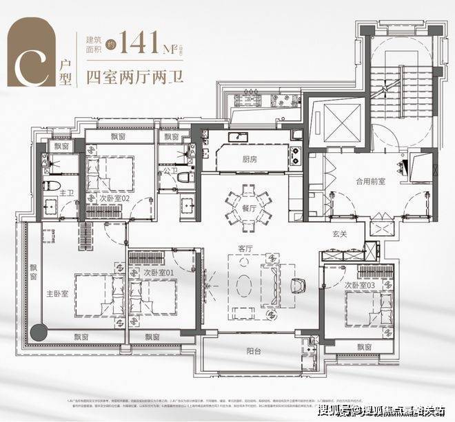 推售建面约96-103-128-141㎡3-4房,