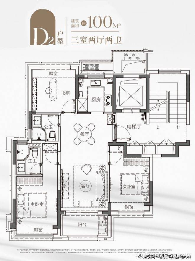 另一套建面约100㎡飞机户型,同样做了三房两卫,建发海阅首府24小时vip热线电话:400 - 882 - 4258