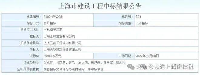 2022年2月8日,上海天华建筑设计有限公司以3994.65万元中标士林华苑二期地块设计项目!士林润园售楼处电话4008569058☑️☑️
