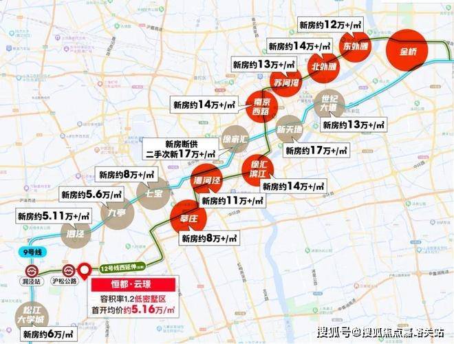 从全市格局来看,12号线可谓是上海的黄金线路,漕河泾、徐汇滨江、南京路、苏河湾、北外滩、东外滩均是上海寸土寸金的CBD,价格早已超过10万大关。而与项目相隔4站的莘庄(七莘路站)目前已经超过8万/㎡,相比之下容积率1.2均价5万出头的恒都·云璟完全能成为12号线沿线高精尖人群的改善置业目的地!