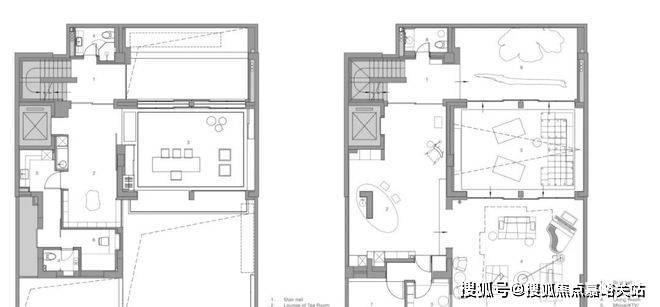 这样的布局提供了多样的就座选择——主客厅区保持其开阔大气,与庭院浑然一体;而配备了吧台并可俯瞰北侧小庭院的休闲室,则营造出温馨私密的氛围。