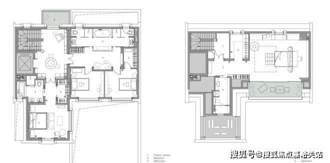 二层设有儿童区和父母房间。所有房间都围绕庭院布置,以充分利用景观视野。我们还将楼梯厅空间改造成家庭图书馆——在这个原本私密的楼层创造了一个公共空间。这为家庭成员增加了除客厅和地下室之外的又一互动空间,强化了我们对现代上海家庭——更多交通和爱的理念。