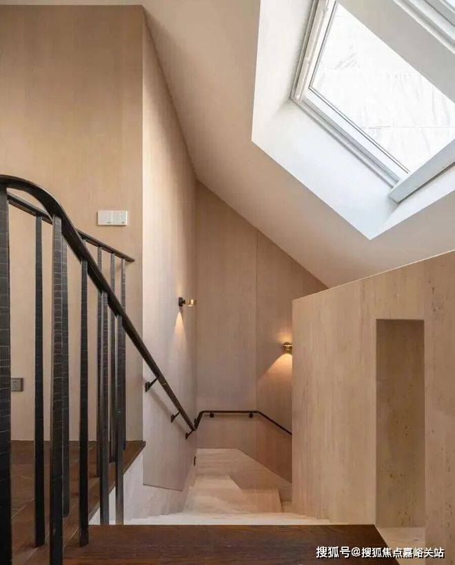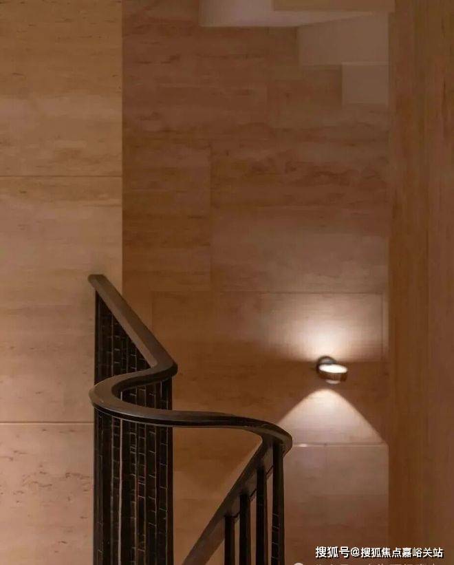 深铜色的栏杆和扶手融合传统与现代语汇,演变出一种当代型态,与现代白色洞石相映成趣,营造出优雅纯粹的意境。