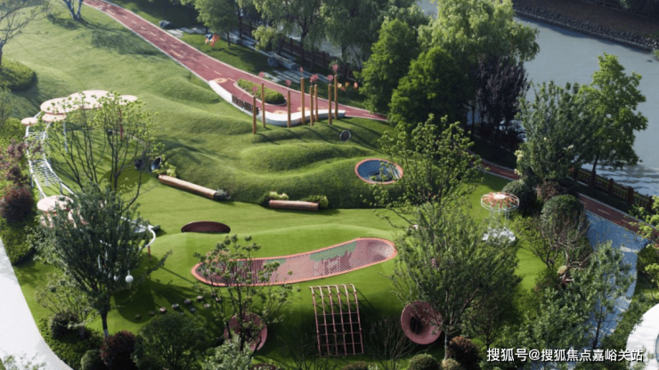 约14万方潮玩艺术公园,涵盖约2600米的滨水悦跑道、约1300㎡潮玩滑板公园、超2100㎡滨水阳光草坪、网球场、小、中、青、老各种年龄层的活力运动场地。