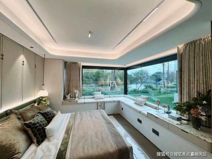 主卧 270 度转角落地窗,俯瞰滨水公园景观,享受静谧惬意的栖居体验;