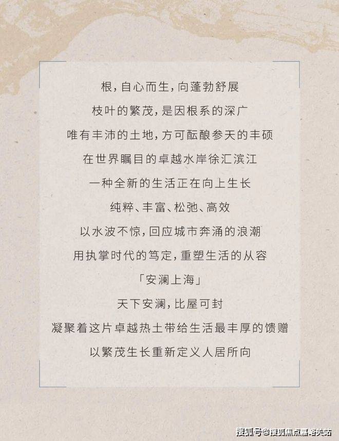 「安澜上海」,既有“天下安澜,比屋可封”的盛世意象,也承载着引领上海的魄力与自信,在徐汇滨江的卓越热土之上,用一场蓬勃向上的生活方式革新,引领上海高端居住迈向崭新纪元。纯粹、丰富、松弛、高效,凝聚着徐汇滨江带给生活最丰厚的馈赠,为看过世界,看懂世界、依然懂得如何好好生活的人呈现一处归心的所在。