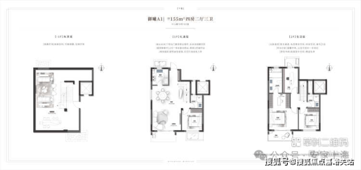 上叠:实现 2+1房2卫 设计,长辈房位于三层、配卫生间,规避上下楼梯的麻烦。 南向阳台与餐客厅一线贯通 ,享受充沛阳光。 四层豪华主卧、北侧连接露台, 空中露台及顶层阳光平台,可量身定制成一方幸福天地。