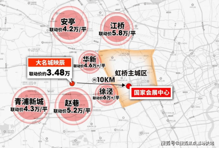 而项目联动价只有约3.48万/㎡,入手门槛远远低于周边板块,如果预算相对有限,但工作在虹桥商务区,或者想有便捷自驾条件,那项目非常适合。