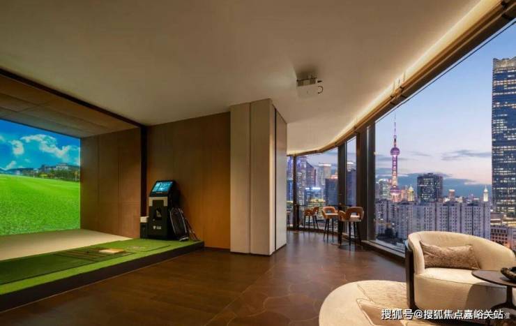 约24.5米长的无边界泳池,以透明亚克力池底设计模糊了建筑与自然的界限。畅游其间,陆家嘴的繁华倒影,北外滩的地标群像,以及规划6公顷中央公园的绿意尽收眼底,宛如在城市上空自由穿梭。