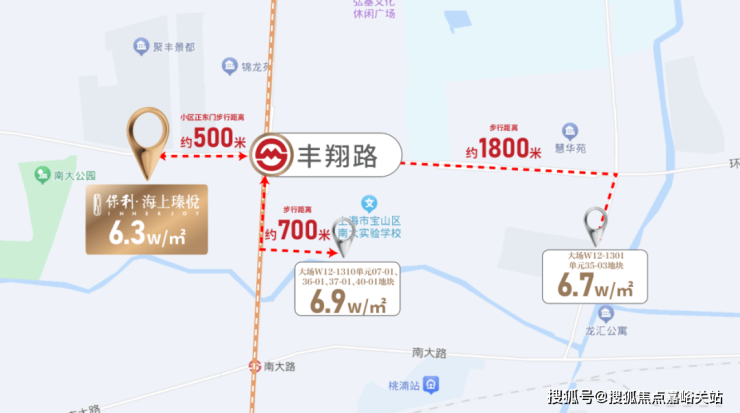 同板块对比,宝山区大场镇W12-1301单元35-03地块联动价6.7万/㎡,宝山区大场镇丰翔路地块(W12-1310单元07-01、36-01、37-01、40-01地块)联动价已达到6.9万/㎡。