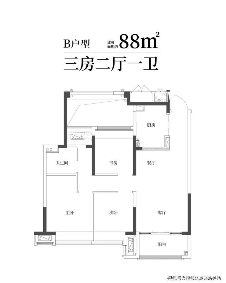 建筑面积约88㎡精雅三房一卫,三口之家理想;