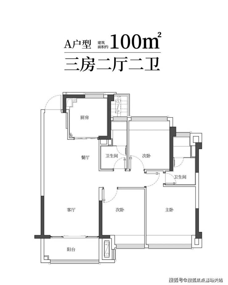 建筑面积约100㎡雅致三房两卫,满足二娃时代;